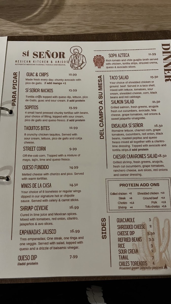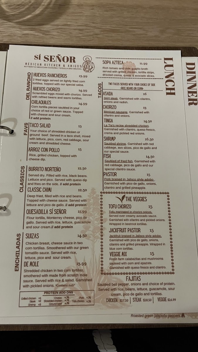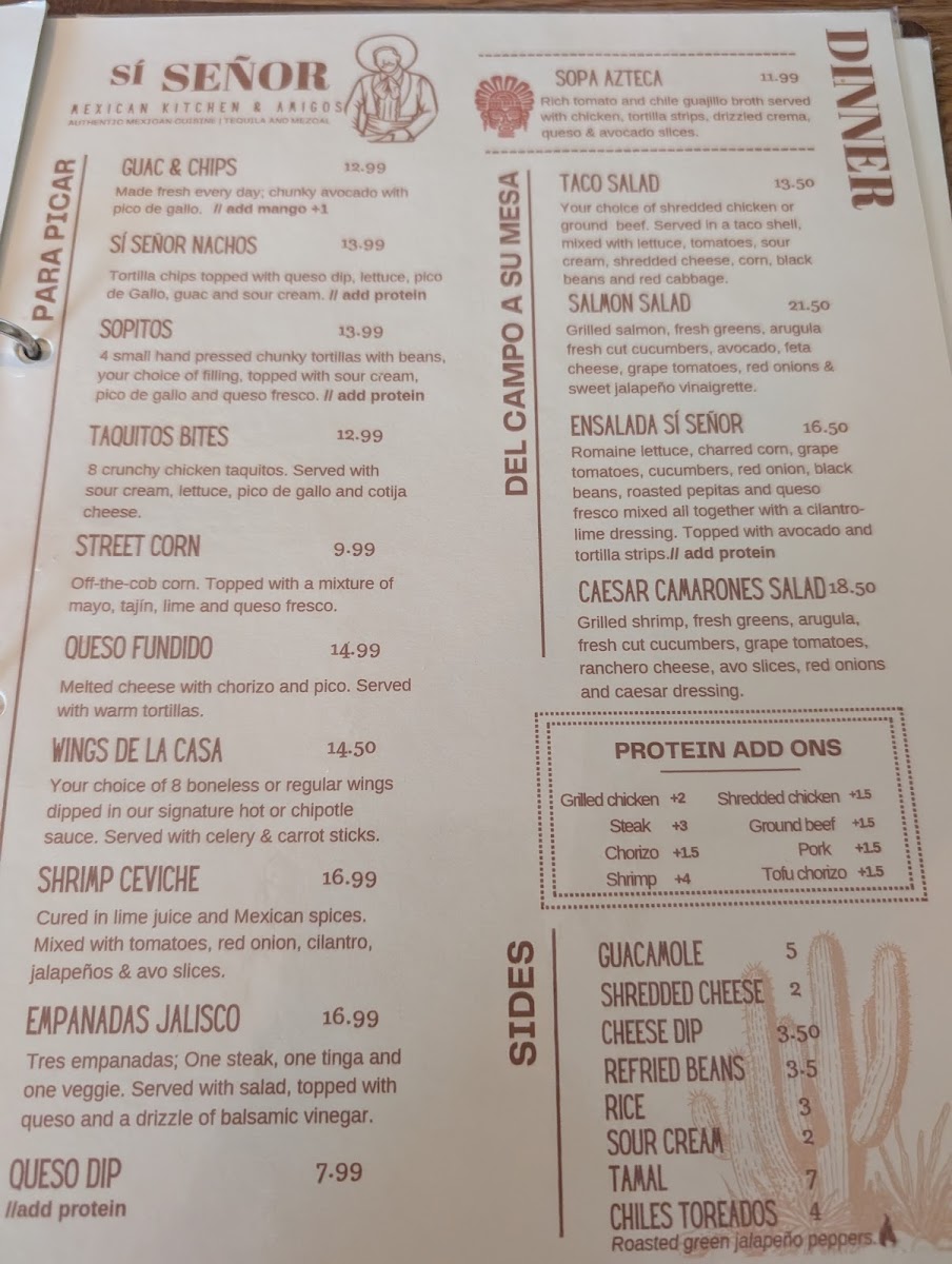 Whether you're in the mood for a light bite or a hearty feast, Si Señor’s menu has something for everyone, promising a satisfying dining experience that blends the bold flavors of Mexico with a welcoming atmosphere.