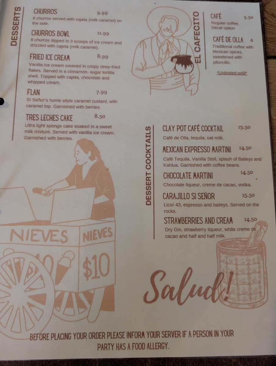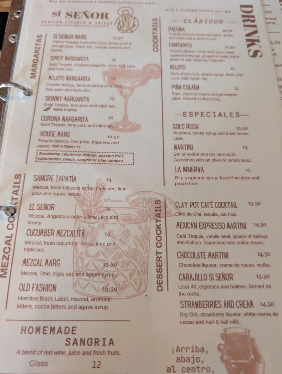 Si Señor also caters to younger guests with their Kids' Combo and Arroz Con Pollo, ensuring everyone can enjoy a great meal. The drinks menu features refreshing options like Jarritos, Mexican Coke, and Topo Chico to complement your meal perfectly.