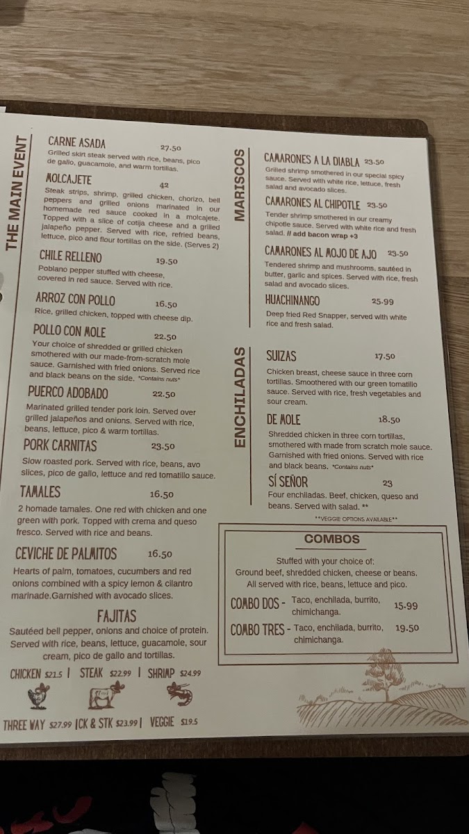 The combo meals, including Combo 3 and Combo 2, allow diners to enjoy a variety of flavors, while the dessert options, such as 3 Leches Cake, Churro Bowl, Fried Ice Cream, Flan, and Churros, provide the perfect sweet finish to your meal.